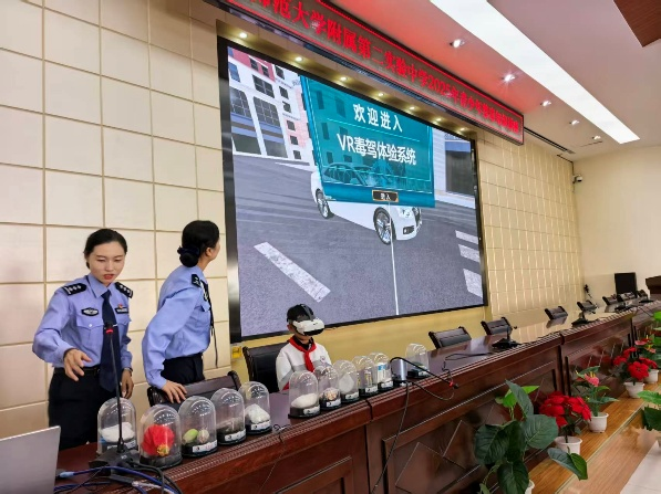 最后,张警官利用VR虚拟现实技术,邀请学生上台体验毒品的危害,让学生能够真切地感受到毒品对于我们的危害,让学生能够清楚地认识到禁毒这场没有硝烟的战争严峻而残酷。