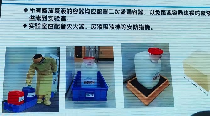 培训环节邀请专家围绕危险废物概念与法规、危险废物安全管理、生物安全管理三大核心模块展开深入讲解。通过专家的讲解,实验员老师进一步明确危险废物的分类标准、识别方法及最新环保法规要求,合规处置的法律责任;废物从产生、暂存到处置的全流程管控措施,包括容器标识、存储条件及应急预案制定;生物类实验室病原体管理、个人防护装备使用及生物废弃物处理规范。通过案例分析与法条解读,帮助参训师生建立"源头管控 - 过程严管 - 全程可溯" 的安全管理思维。